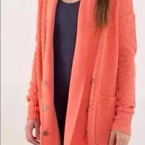 Pretty and so comfy, this post practice Cardigan is a pretty peach color. Size 6 but oversized so would fit an 8 too.