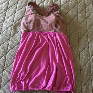 Supportive built in bra, Power Dance tank by Lululemon in a size 6. Beautiful ultra violet and wee are from space stripes. Model images found online. In excellent to like new condition, bra inserts included. Cinchable drawstring at the bottom hem.