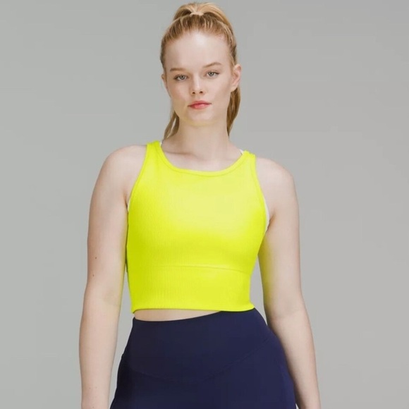 Lululemon Power Pivot Tank Ribbed Crop Reversible Yellow Neon Size Small (4/6)