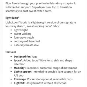 Lululemon Power Pose Tank *Light Support For A/B Cup-Jasmine White Multi/ Size 4