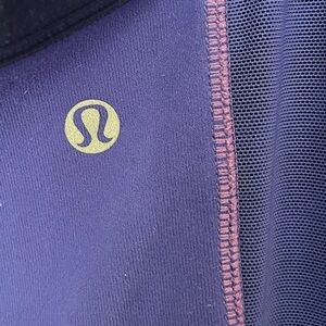 A great workout tank in excellent preloved condition. A blue/purple color with dark navy straps. Pink stitching throughout. Mesh in the back, with a back packet. Pads are still in the bra, but are removable. No cracking on the logo. Medium support. Great for yoga!