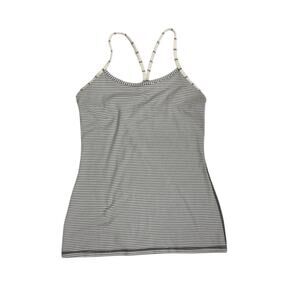 Lululemon Power Y Cream White Black Striped Racerback Tank Top Size Women's 10