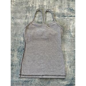Lululemon Power Y tank top. Has a tiny heathered micro stripe pattern throughout. I believe Lululemon calls it the "Tonka" stripe. Please see photo for closeup of stripe pattern. Built in shelf bra with openings for optional breast padding (not included).