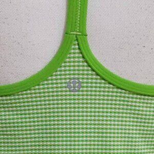 The long internal Lululemon tag has been removed, but the size dot inside the shelf bra shows that this tank is a size 10.