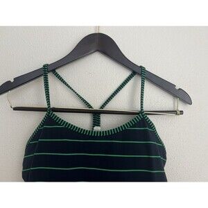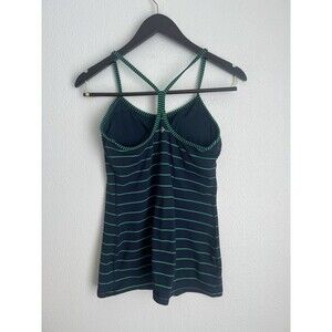 Lululemon Power Y Tank Top Navy Blue Green Striped Size 8
