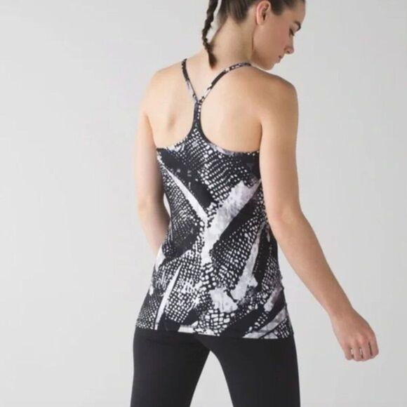 Lululemon Power Y Tank Womens 4 Black White Racerback Activewear Yoga Running