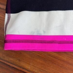 Lululemon Power Y striped racerback shelf bra athletic tank; has some spots near the hem on front and back; SEE PICS; no size tag; SEE MEASUREMENTS