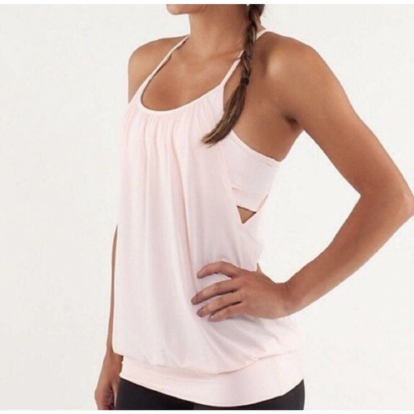 Lululemon Practice Freely Tank Racerback Striped Sports Bra Size 6 Light Pink