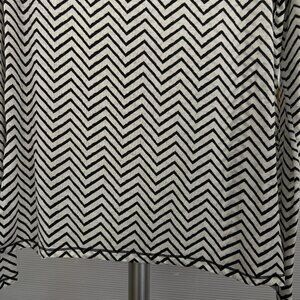 Lightweight & lightly sheer, 4 way stretch, side openings, made with burnout fabric in black & dull white. Great for layering.