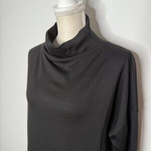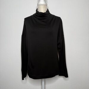 Lululemon Principal Dancer Funnel Neck Sweater in black. Gold metal lululemon logo. Missing the tear away tag, refer to photo for pit to pit measurement. Merino wool. Good used condition!