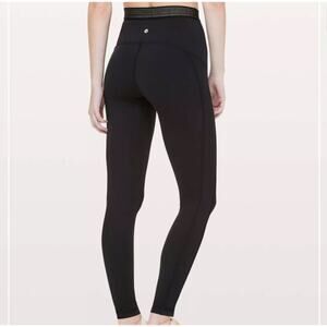 Excellent condition! These rare, hard-to-find Lululemon tights feature a chic golden-lined waistband that elevates your workout or casual style. Designed with sweat-wicking, four-way stretch fabric that provides ultimate comfort and flexibility.