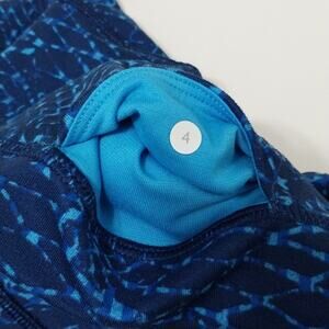 This athletic item by lululemon worn several times. hi rise. cut out details. luon fabric. cottony soft. breathable. waistband pocket. great shape retention. color and detail is samba snake kaya hero blue.
