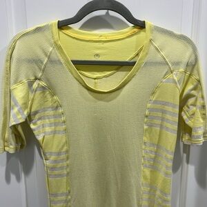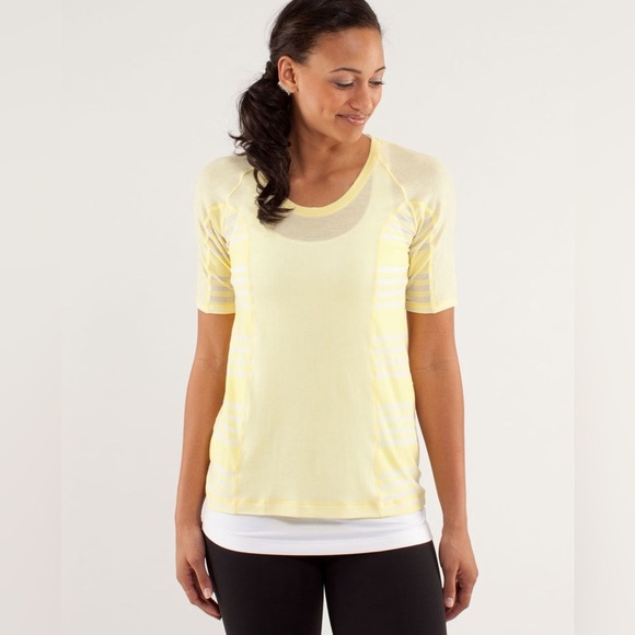 Lululemon Puri Tee Short Sleeve Tonka Stripe Mellow Lemon / Mellow Lemon Sz 6