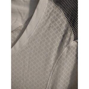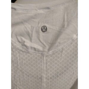 Lululemon scoop neck short sleeved white and gray Puri Tee burn out mesh work out T-shirt.