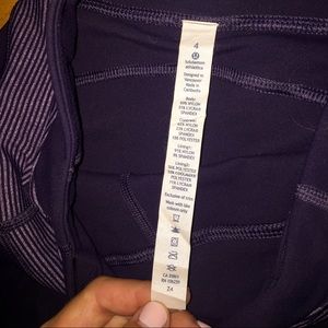 These are in excellent condition. Never worn, but the tags are removed (NWOT). Have side pockets for keys or a phone. Size 4 in Lululemon sizing.