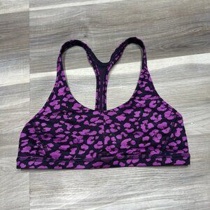 Stay stylish and comfortable with this purple leopard print sports bra. Perfect for workouts or casual wear.