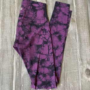 Women’s size 4 Lululemon purple and black print design long length stretch leggings tights or pants in excellent preowned condition. No observed flaws. Clean nonsmoking home. Approx 11” across waist, 31” inseam, 9” rise.