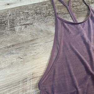 Breathable and featherlight racerback tank in a muted purple tone with mesh paneling along the back. Perfect for workouts, errands, or layering. Classic Lululemon quality and logo at hem.