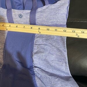 Stylish Lululemon sports bra in a beautiful purple shade. Perfect for workouts. Measurements are in picture small to a medium 19 inches in length. Pads in bra 😊😊