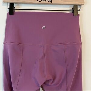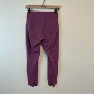 Features: bright purple, scallop hem leggings, mesh panel details, high rise, 7/8 length.
