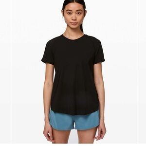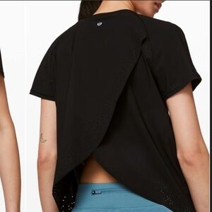 Every element of this tee was thoughtfully considered to make you feel cool and collected as the intensity—and heat—of your workout rises. It has a high neckline for coverage and crossover layers in the back for airflow.
