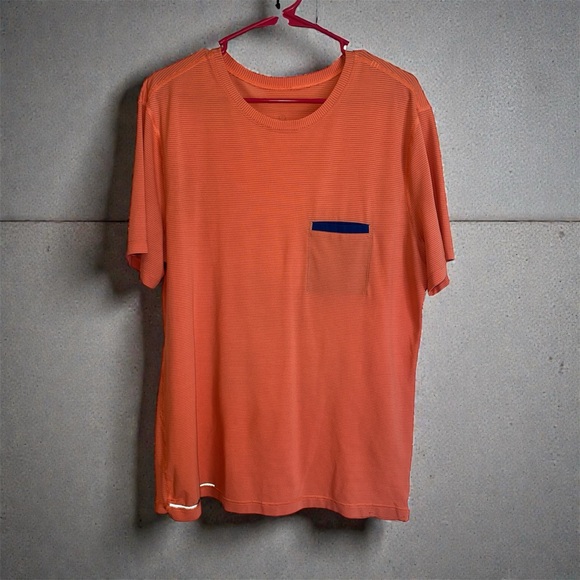 Elevate your casual wardrobe with this stylish coral t-shirt featuring a striking blue accent. Perfect for everyday wear.