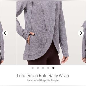 Elegant Lululemon wrap in a heathered graphite purple. Ideal for cozy layering.