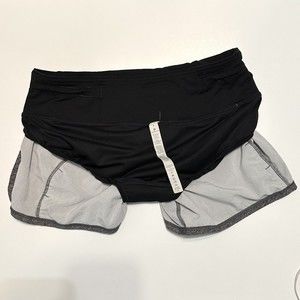 Lululemon RUN TIMES SHORTS II *4" Heather Lux Multi Black SWIFT Size 4 Measurements in photos is from seam to seam in the waist and bottom of crotch to bottom of length.. Please compare measurements to clothing you already own before ordering. Shorts have been laundered but always suggest washing any pre owned garments.. please look at all photos and feel free to contact me with any questions..