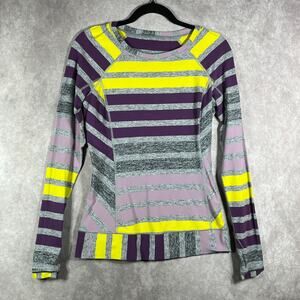 Lululemon Race Your Pace Shirt Womens Size 6 Multicolor Striped Long Sleeves