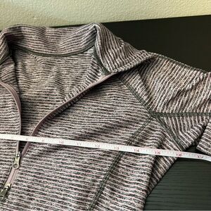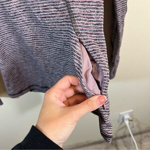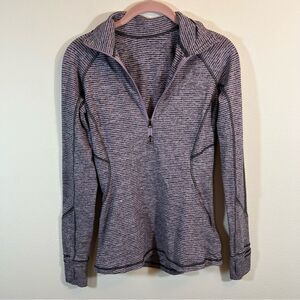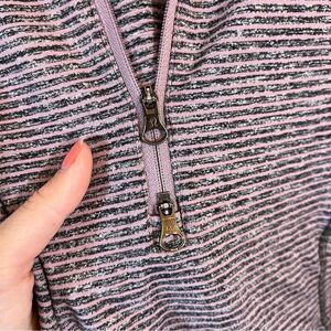 Lululemon women’s purple and gray striped quarter zip pullover.