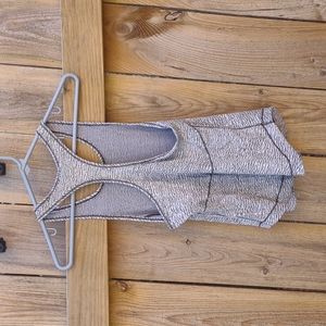 Lululemon grey and white striped racer back tank. No size tag, I believe it's a size 2 based on other Lululemon shirts I have and the online size guide. Measures 15 in pit, and 22 in shoulder to hem. GUC.