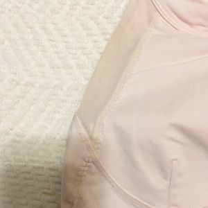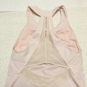 Extremely flattering baby pink racer back workout tank with built in bra- lots of mesh detailing and fits like a glove!