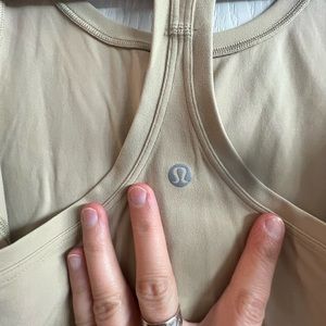 Lululemon tank top. Size 6, tan color. No rips or stains. Hits at the hips.