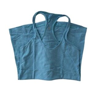 Lululemon racerback tank. Super soft. Robin's egg blue/purple stripe. Photos don't do it justice. So springy! Hardly worn.
