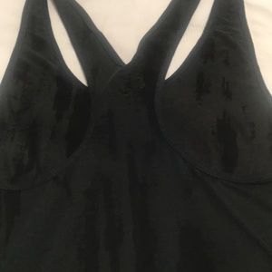 Racerback Tank from Lululemon in a black tone on tone pattern. Tank material is very soft. It has been worn a handful of times and only washed in cold, laid flat to dry. No holes, stains or tears. Comes from a pet and smoke free environment.