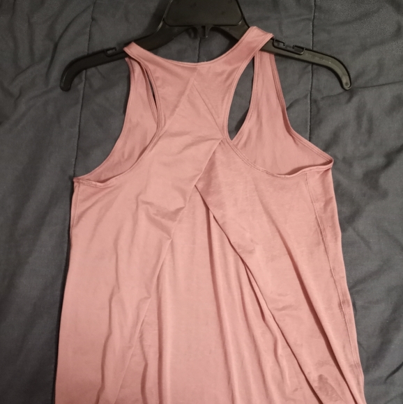 Lululemon racerback tank. Dusty pink color. Back has a criss cross feature but is NOT an open back. Very silky, lightweight fabric. Great for gym!