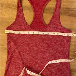 Red Heather racerback Lululemon tank. Like new condition (I don’t believe it was ever worn). Size 4 or 6 (tag is cut out), see measurements in photos.