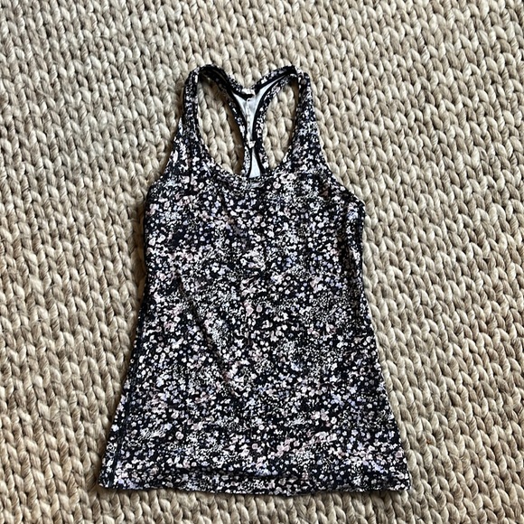 Lululemon Racerback tank. Super stretchy, tight fit, size 6. Tag is faded but it is a size 6! Floral print.