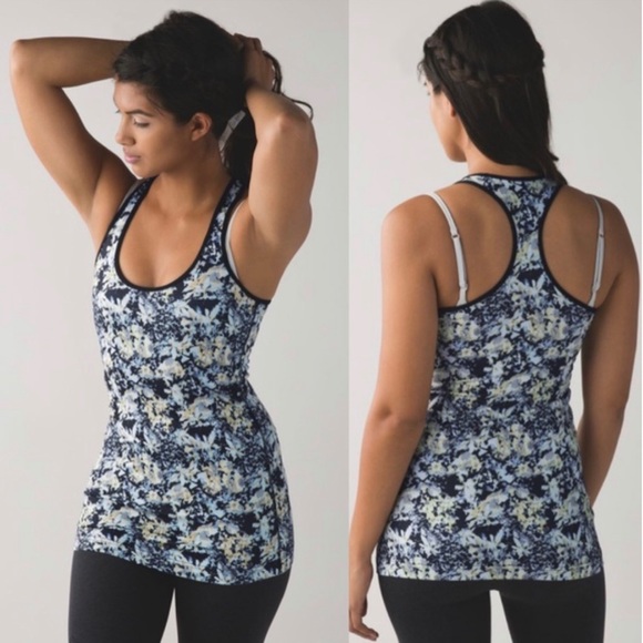 Lululemon black floral cool racerback tank. Size 6. Worn several times but in EUC.