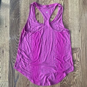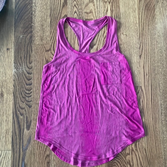 Only worn a few times and in excellent condition. Lululemon magenta burnout Racerback tank with pocket on front and a curved hem. Size 6.