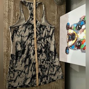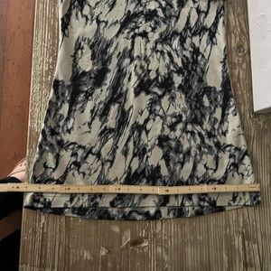 See pic for measurements, no tag size8/10, some stretch. Color is taupe/tan with black and grey print. No signs of wash or wear