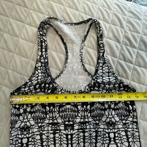 EUC. No size tags. I have provided measurements in pics. I believe it’s a size 4 but refer to pics. Tank is very soft & has lulu symbols mixed all through splash pattern.