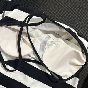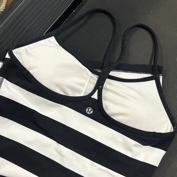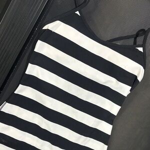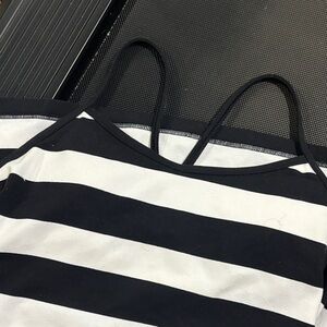 Stylish full length black and white striped athletic tank top. Built in shelf bra with removable pads. Womens size 4