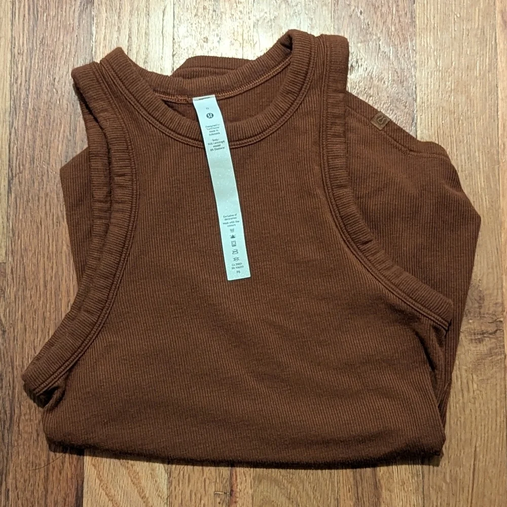 Ribbed form fitting racerback tank from Lululemon. Size tag says 0, would fit XS and below.