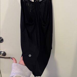 Lightweight Lululemon performance tank in classic black with a flattering draped fit. Features a racerback design and subtle perforated detailing across the upper chest and straps for added breathability and style.