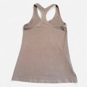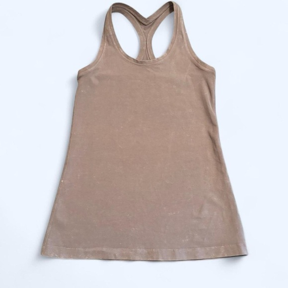 Stay comfortable and stylish with this tan racerback tank top. Perfect for casual outings or workouts.