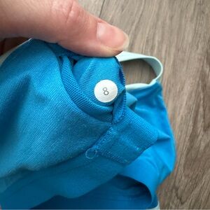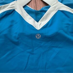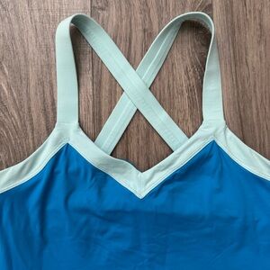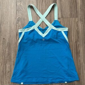 Lululemon racer back tanktop in blue. Features built in bra (no padding). Size 8. Gently worn and in excellent condition.