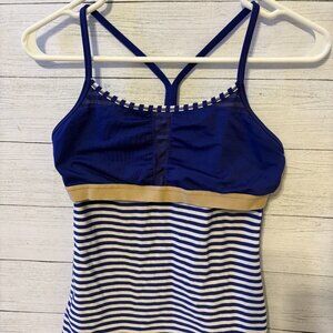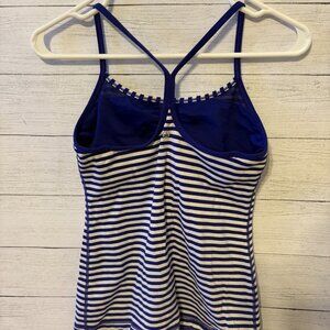 Lululemon Racerback Tank Top Built-In Bra Navy White Stripe Size 6