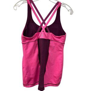Lululemon Racerback Tank Top Womens 8 Shelf Bra Pink Black Stripes