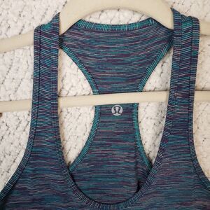 Lululemon Racerback Tank Top Womens 6 Blue Green Striped Yoga Athletic